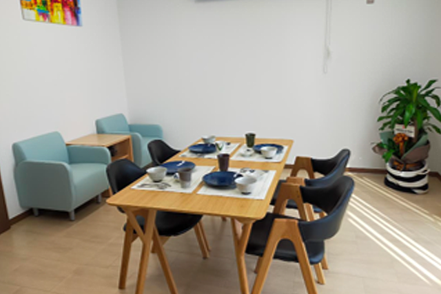 | 利用料 | 家賃:45,000円/月(内25,000円家賃補助有り) 日用品費:600円/月 光熱費:300円/日 食事代(1食につき) 朝食:200円 昼食:350円 夕食:500円 |